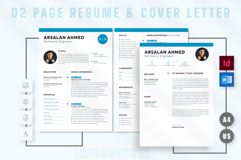 Two-Page Resume Template + Cover Letter - CV Template | InfoBrother